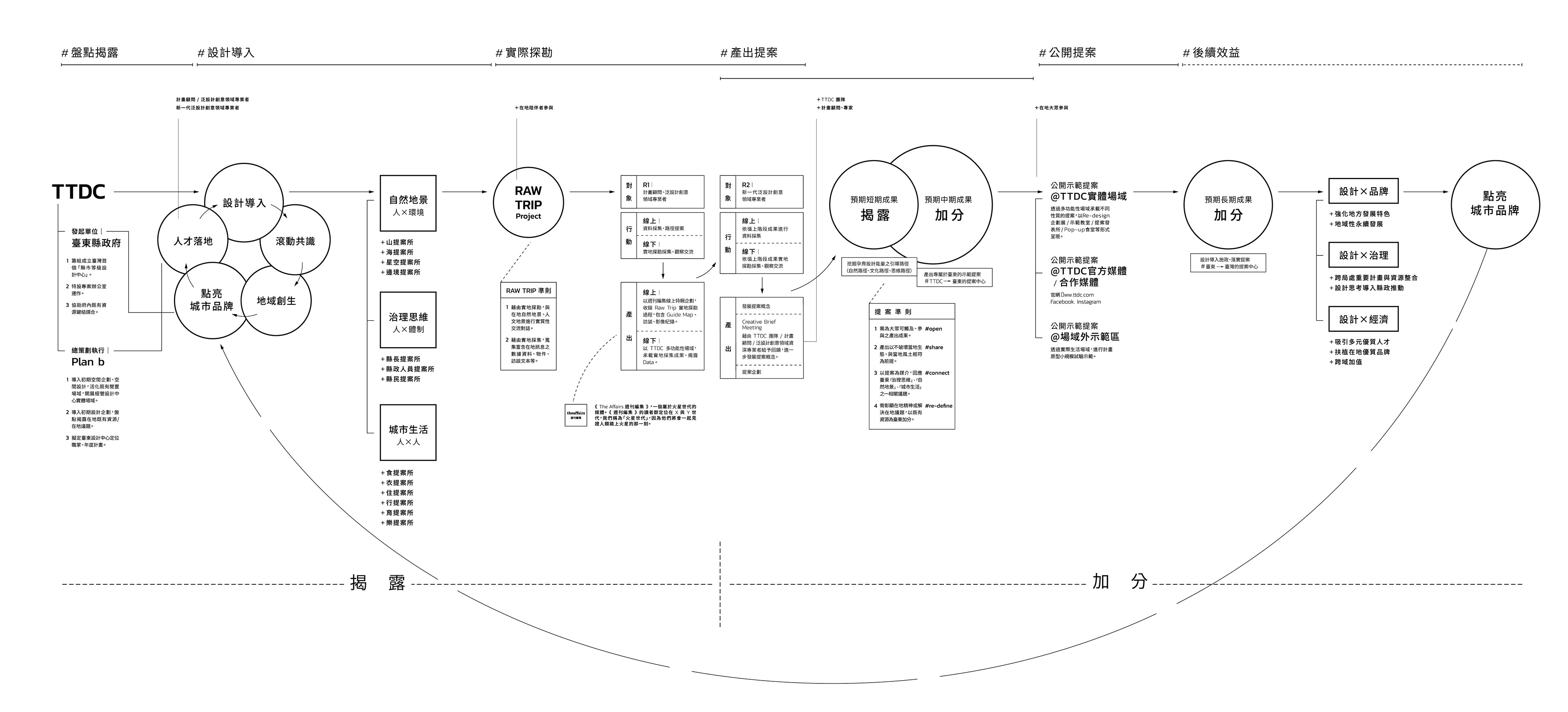 2018 年啟動的「提案所計畫」緊扣治理思維、城市生活、自然地景等議題,邀請在地者、移居者、治理者、外來者,在受臺東每一刻、每一項事物、每一場相遇的啟發後,能提出屬於自我對於這片土地的觀點與介入。透過揭露臺東過去至今累積下來的資源、資料與在地議題,導入設計與行動,形成各方共識,期盼因此達到臺東的地域創生,最終點亮屬於臺東的城市品牌!